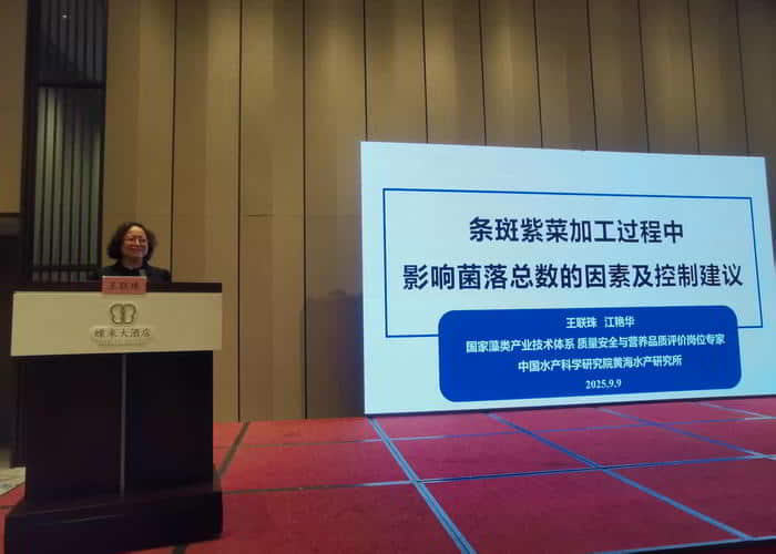 會議還就提高紫菜產(chǎn)品質(zhì)量進(jìn)行講座和交流。黃海水產(chǎn)研究所王聯(lián)珠研究員作了《條斑紫菜加工過程中影響菌落總數(shù)的因素及控制建議》的報告,贛榆東潤海產(chǎn)品有限公司秦軍??偨?jīng)理作了《干紫菜高質(zhì)量加工的可執(zhí)行技術(shù)路線》的交流,戴衛(wèi)平秘書長作了《韓國紫菜產(chǎn)業(yè)考察報告》的報告,收到了與會者的好評。